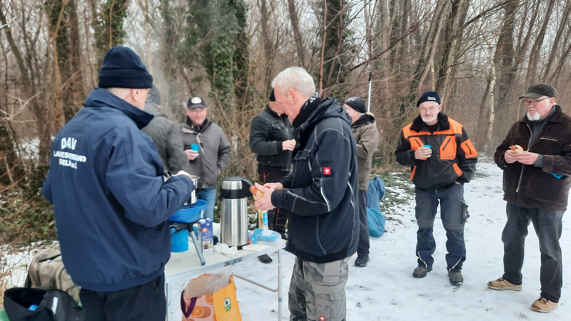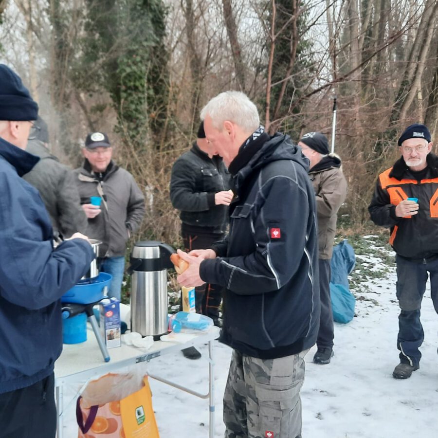 Am Ende des Hegetages trafen wir uns alle wieder am Habermannsee zum gemeinsamen Abschluss bei warmer Bockwurst und heißem Kaffee.